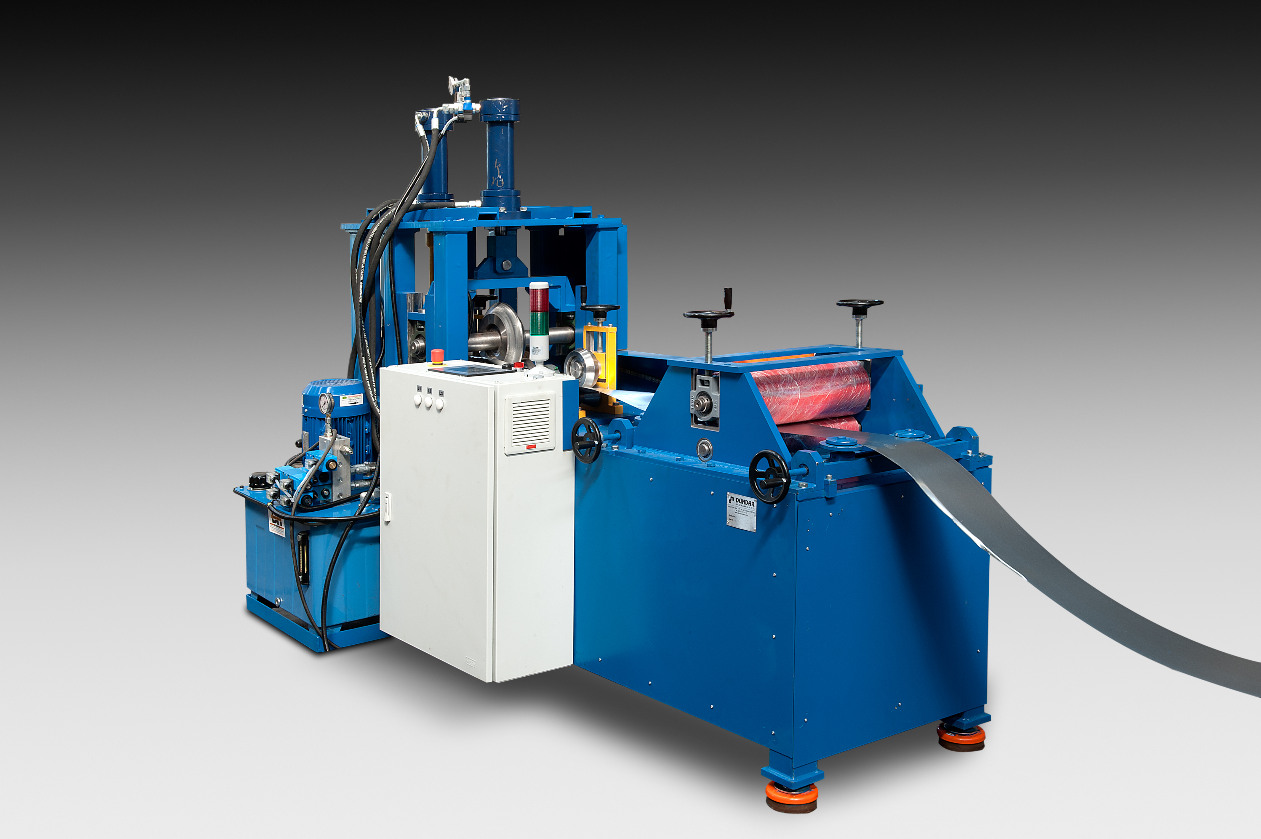 Dündar Makine tarafından özel olarak tasarlanmış olan ROLL FORM KÖŞEBENT HATTI 0,35 mm'den 2 mm'ye kadar olan sac malzemenin zımba ile delinerek (köşebent) şeklinde bükülmesi için üretilmiştir.